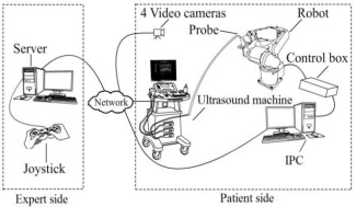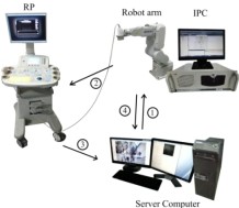 图8. 本人利用6自由度机器人和视频监控系统,实现远程医学超声扫描系统。
