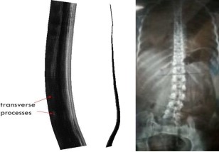 图14.本人提出的2.5D EFOV成像应用于某女性脊柱侧弯病人。左:2.5D EFOV结果图;右:X光片成像图。通过测量Cobb角进行对比,两者误差仅为1%-2%,表明2.5D EFOV的成像准确性已满足实际临床检查的需要。